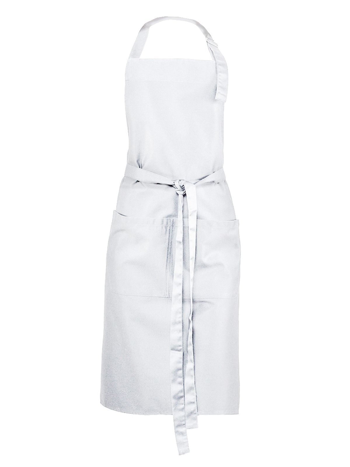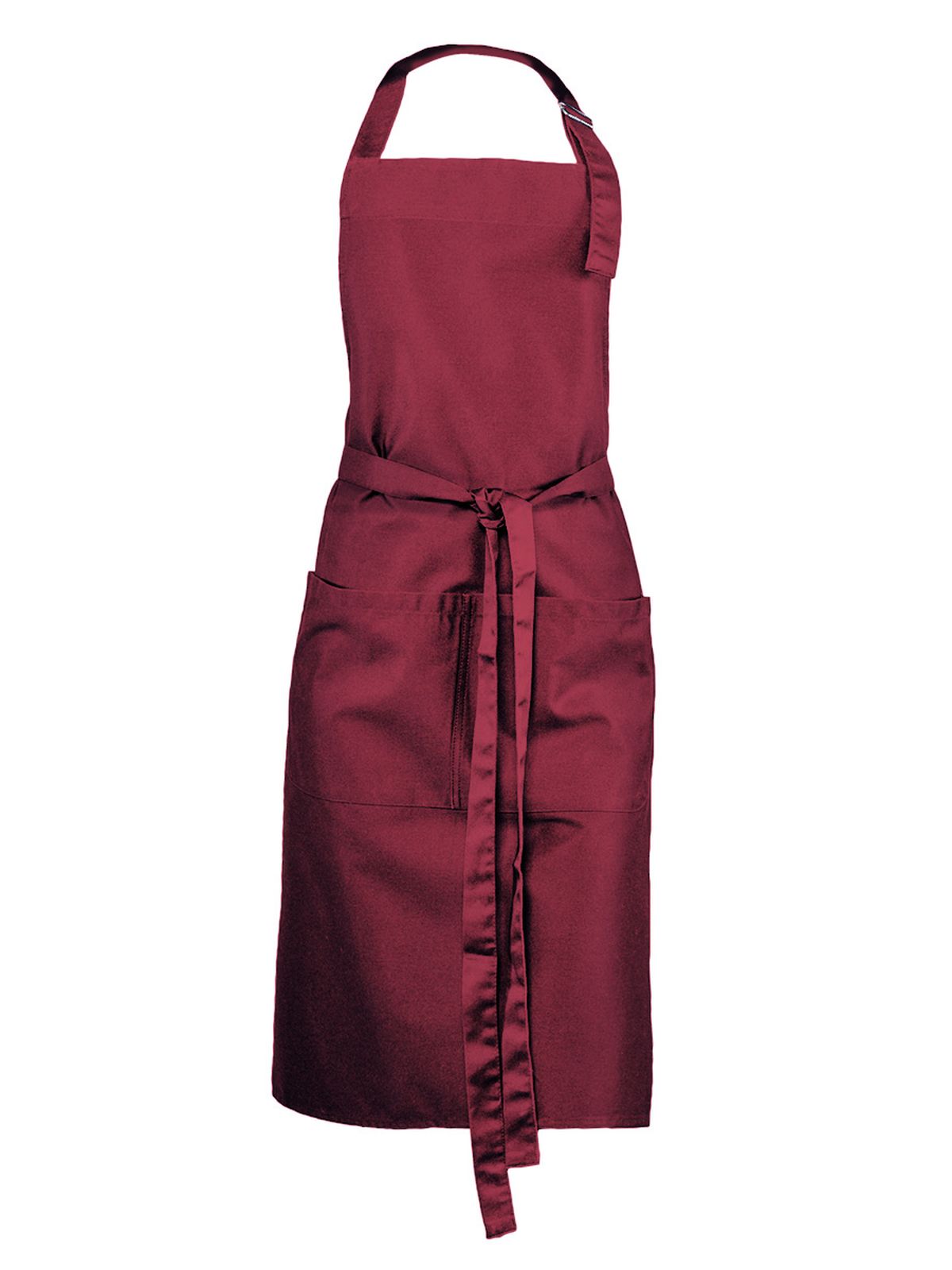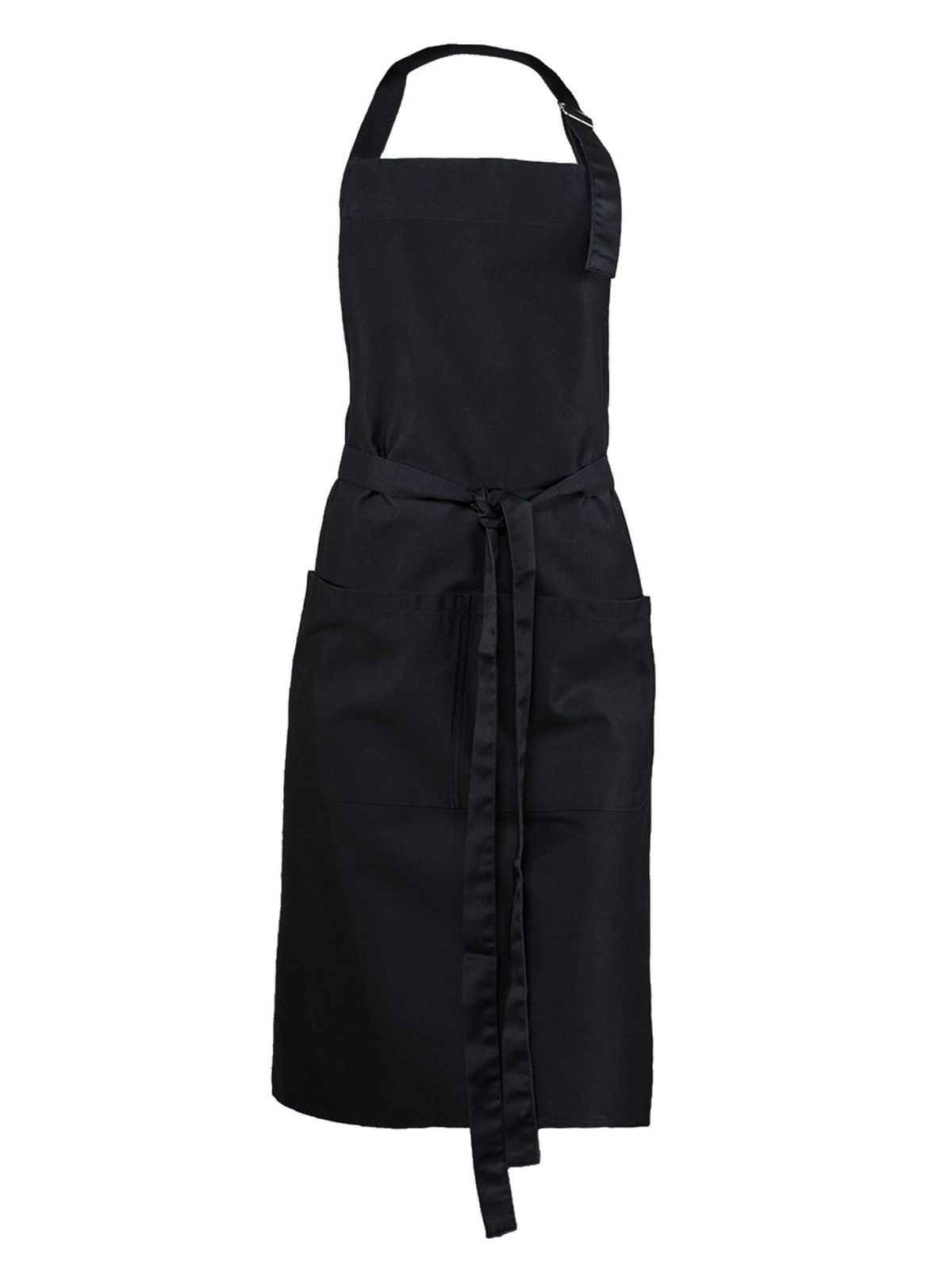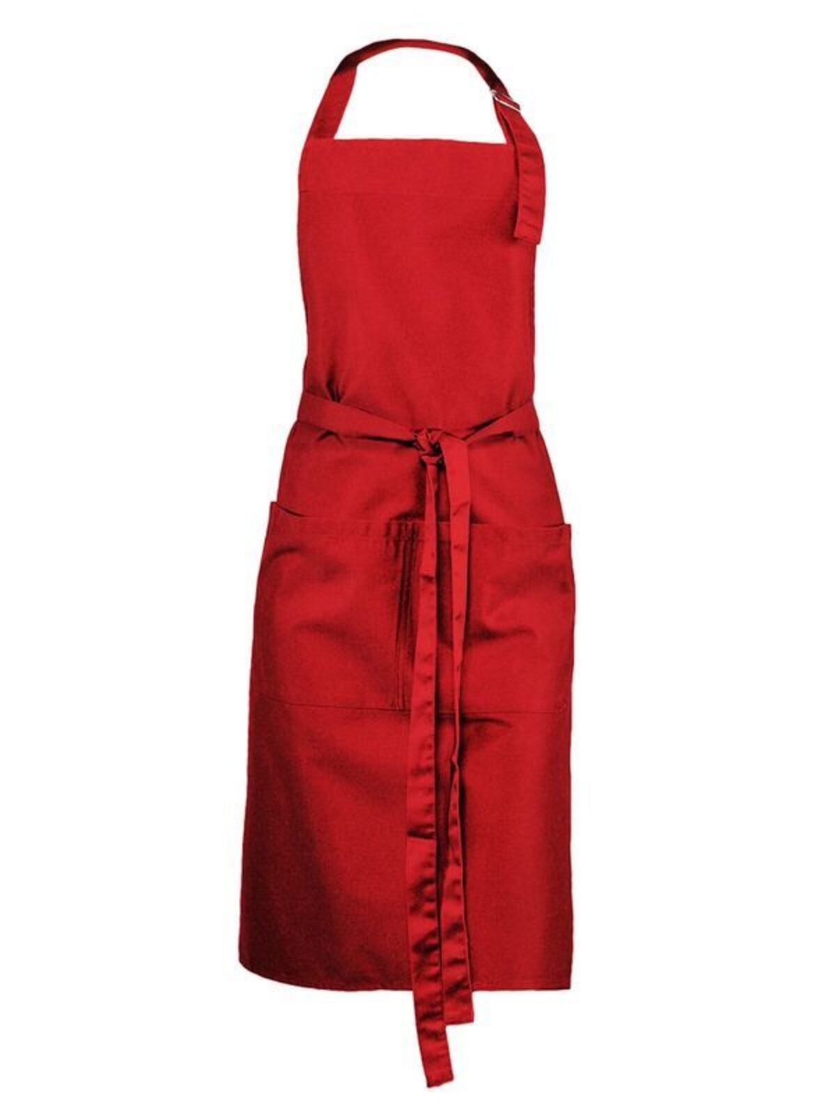 65% poliestere, 35% cotone. Grembiule con pettorina, ampia tasca frontale a 2 scomparti, regolabile con fibbia di metallo.