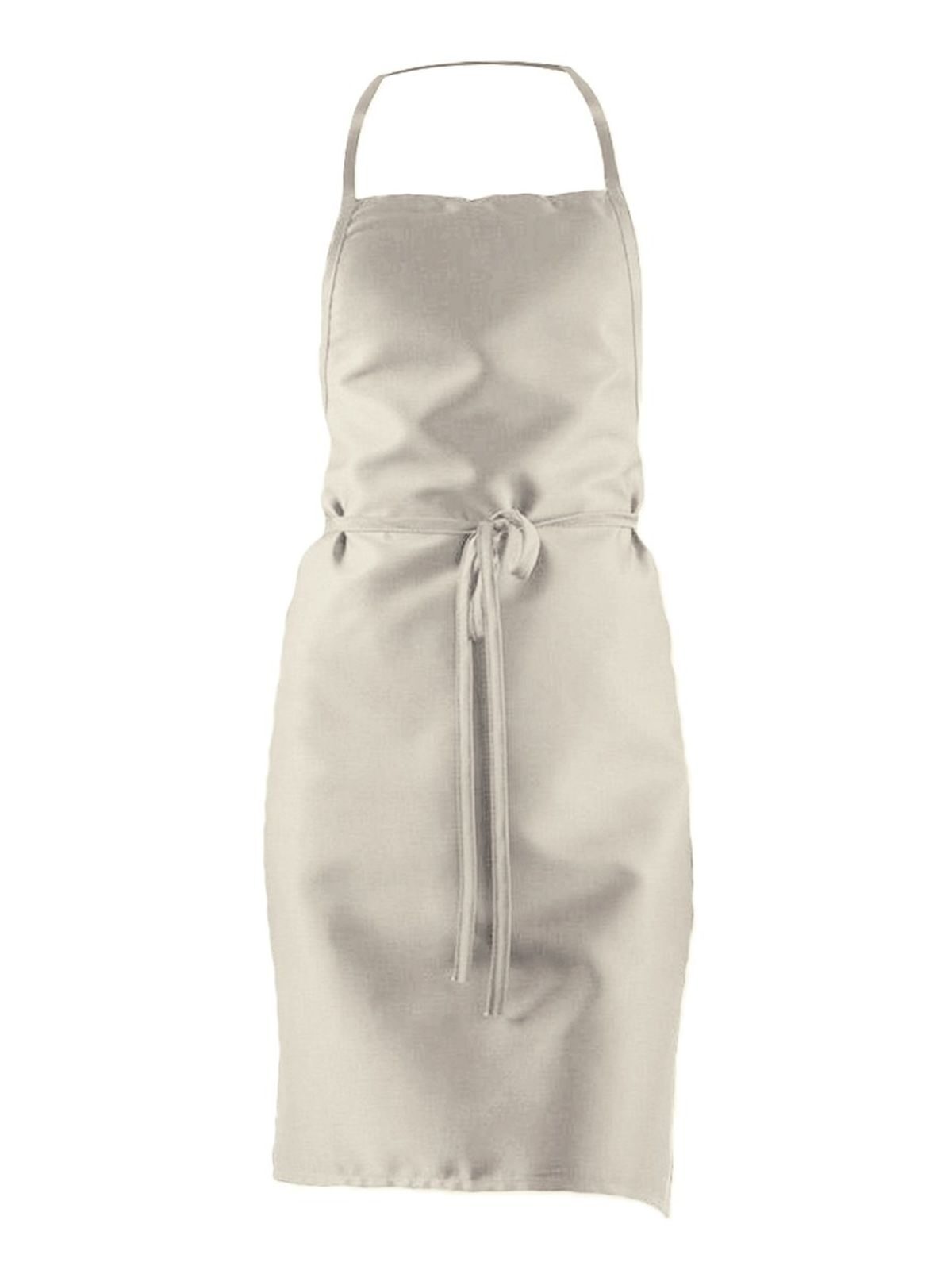 65% poliestere, 35% cotone. Grembiule comodo e avvolgente, senza tasca con lunga cintura. Lavabile a 40°C. Bianco e Natural 100% cotone.
